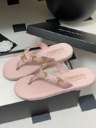 CC 25P Double C 5 Motifs Thongs Sandal Pink Sheepskin 247695