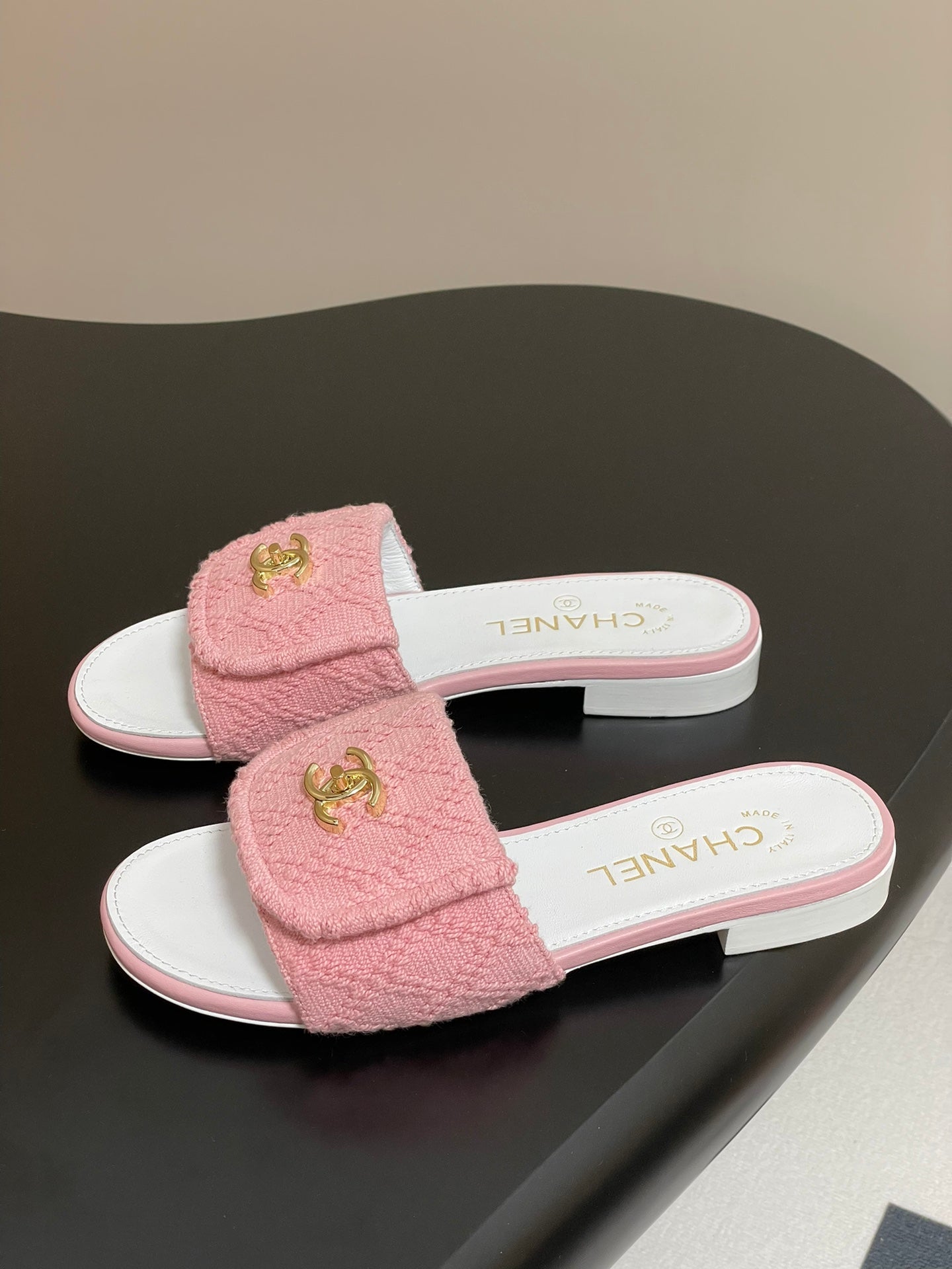 CC 25S Buckle Bag Mule Pink Fabric White Sheepskin 247599