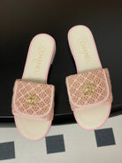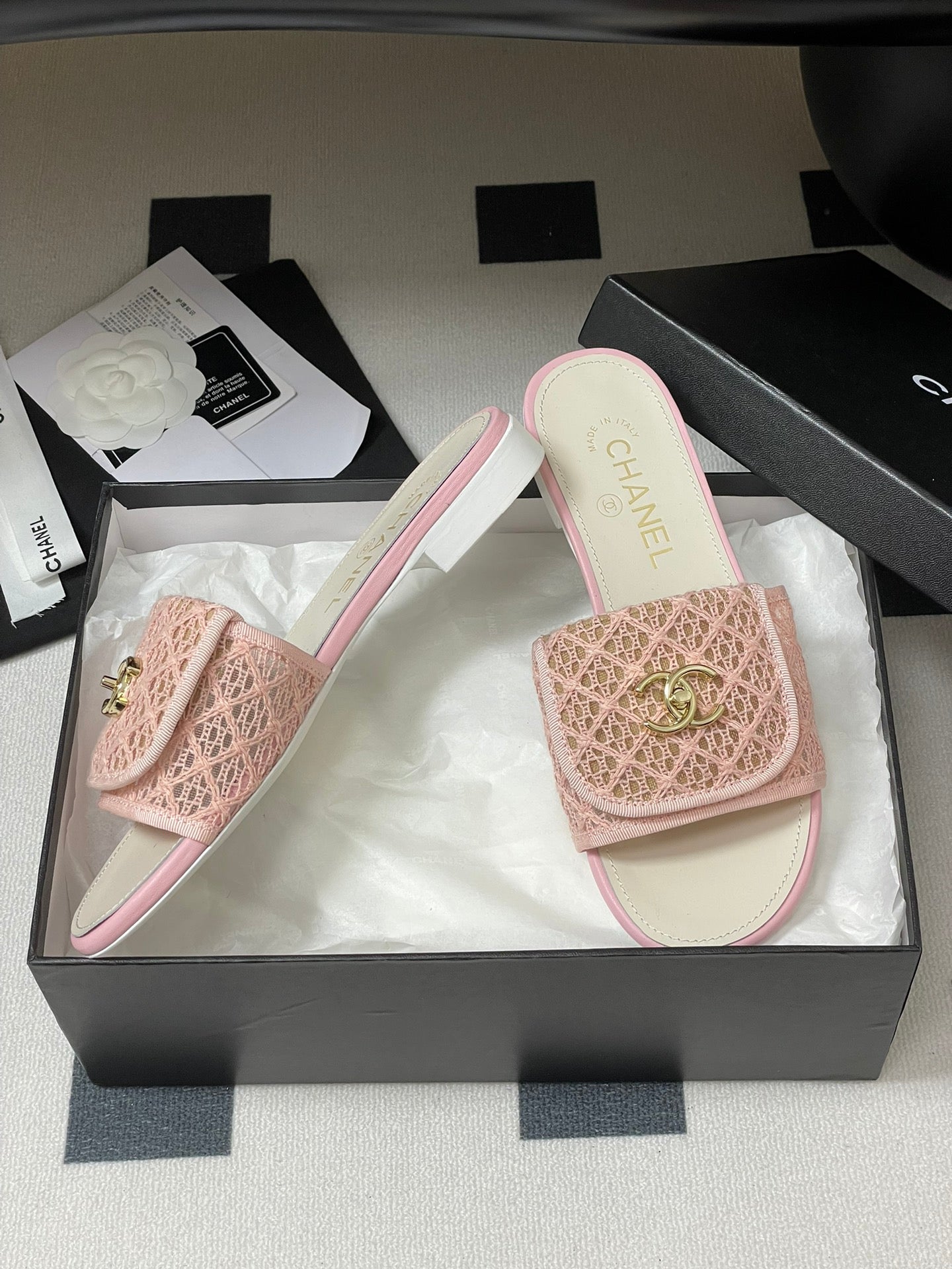 CC 25S Buckle Bag Mule Pink Lace Fabric White Sheepskin 247592