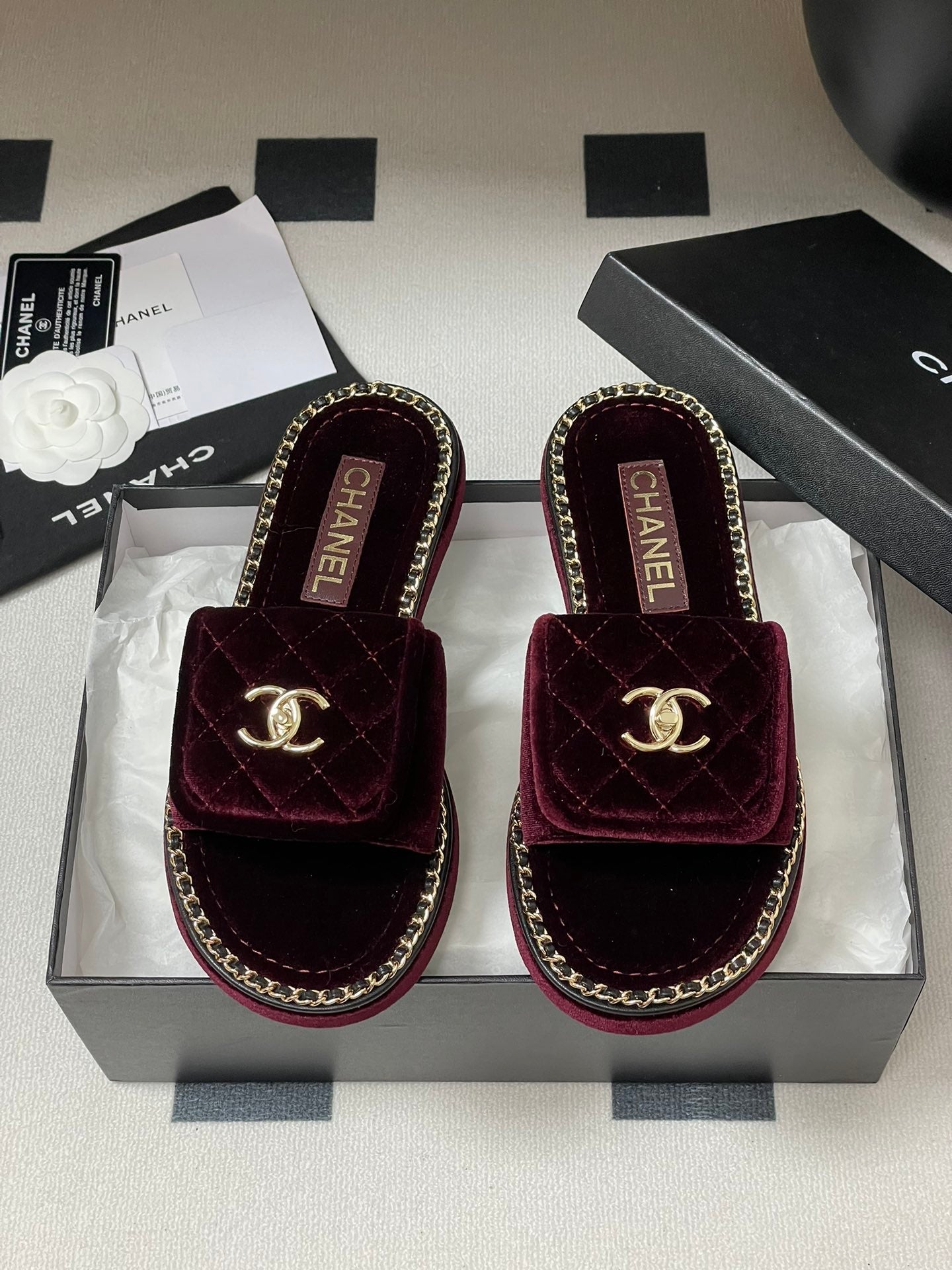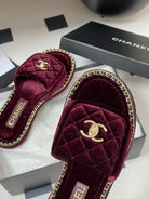 CC 25S Chain Ring Edge Buckle Bag Mule Sandal Wine Velvet 247584
