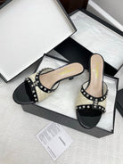 CC 25SS Slippers 5cm Light Yellow Raffia Black Patent Calfskin 338299