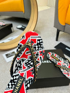 CC Chain Strap Thong Slippers Red Cloth Sheepskin Velvet 305868