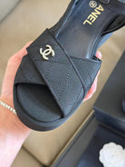 CC CLASSIC WEDGE SANDALS IN BLACK FABRIC