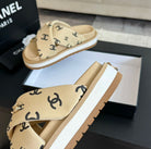 cc cross sandal mule beige lambskin multi logo