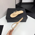 CC Crystal Logo Thong Sandal Beige Sheepskin 352476