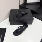 CC Crystal Logo Thong Sandal Black Sheepskin 352475