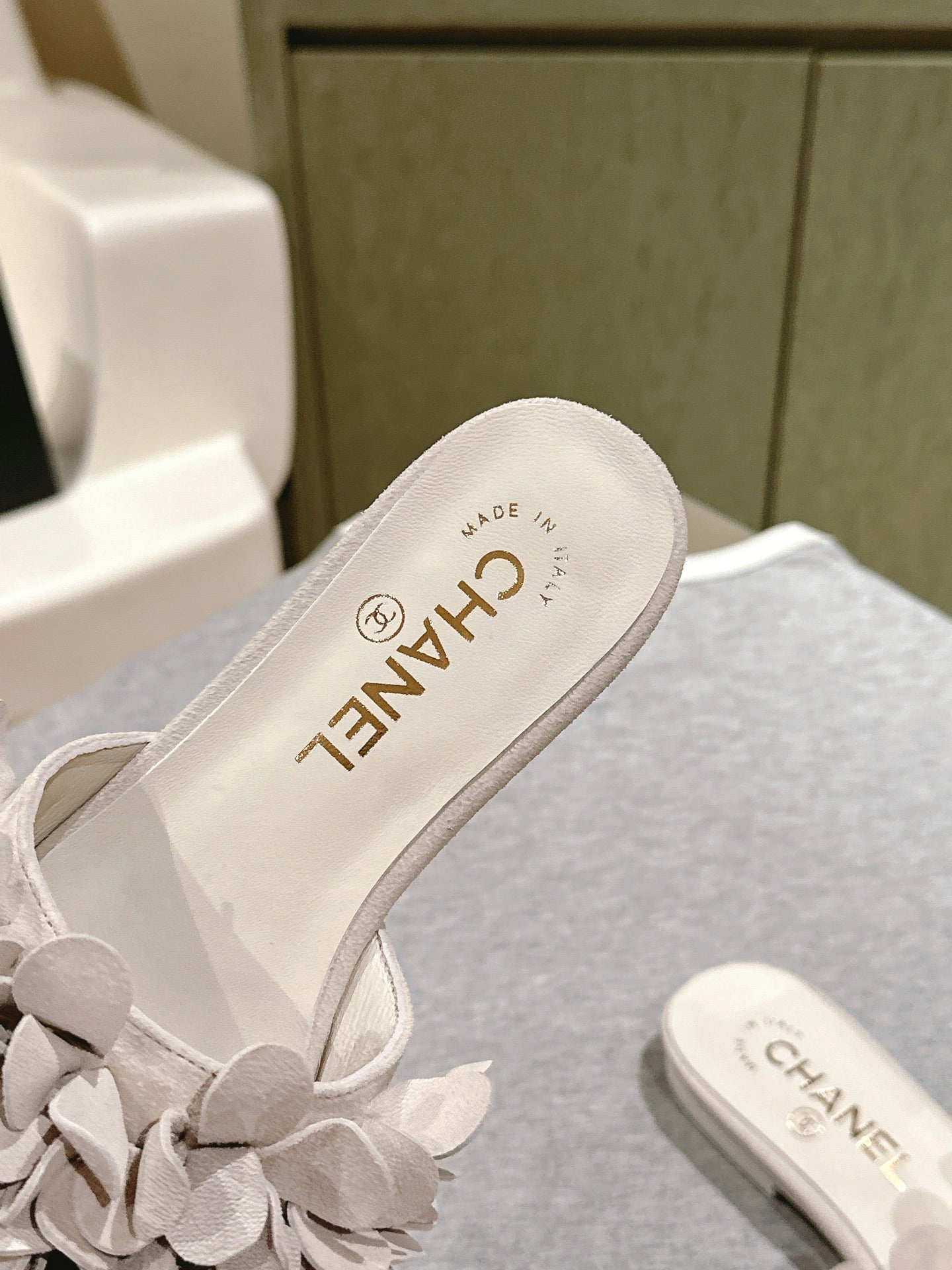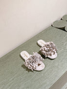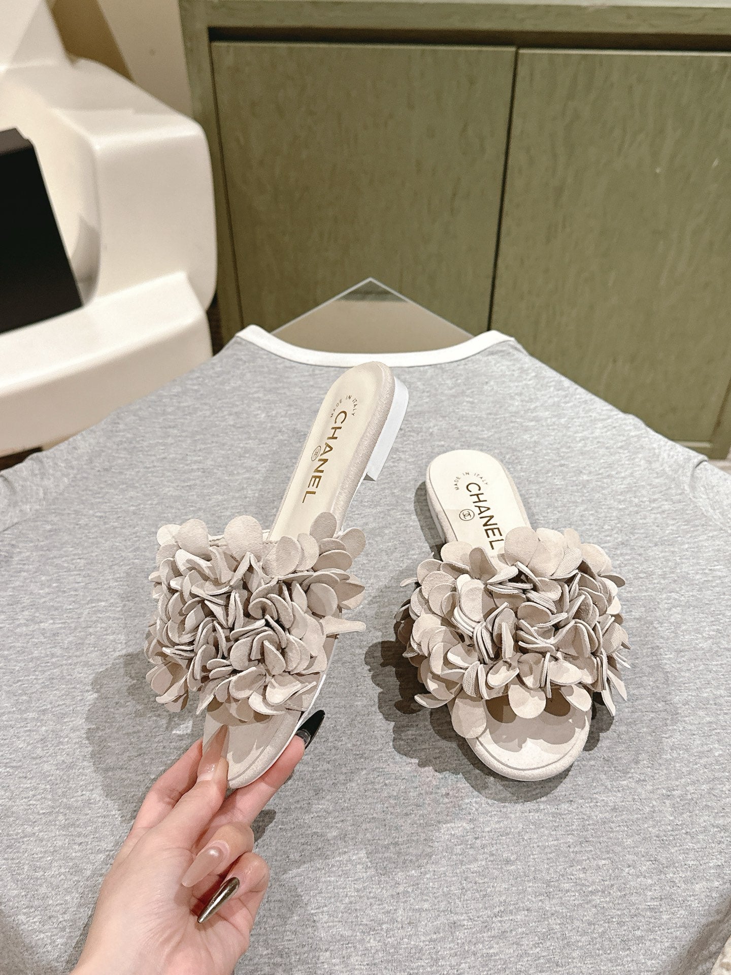 CC Floral Slide Flat Light Taupe Suede Cowhide 454280