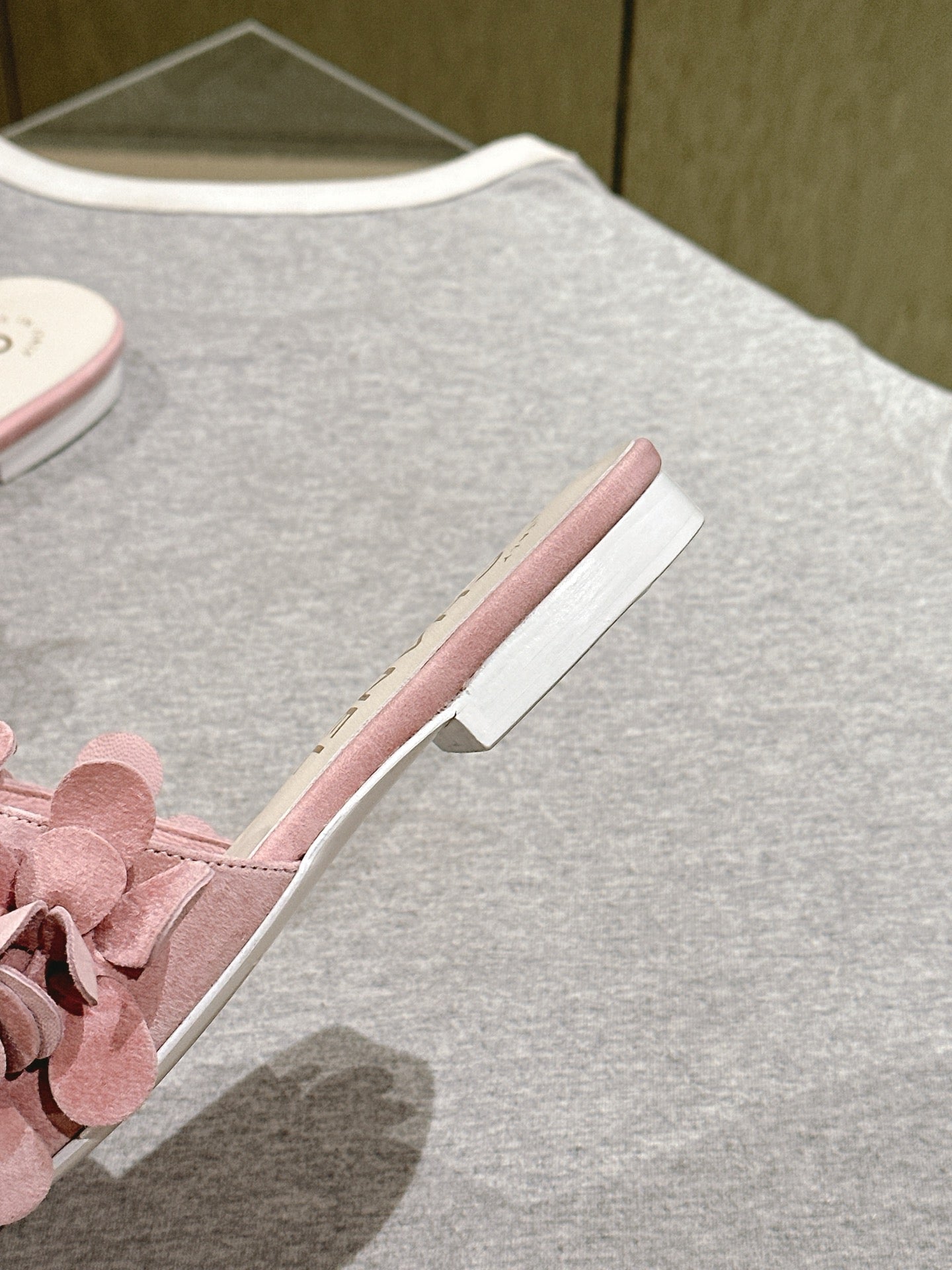 CC Floral Slide Flat Pink Suede Cowhide 454281