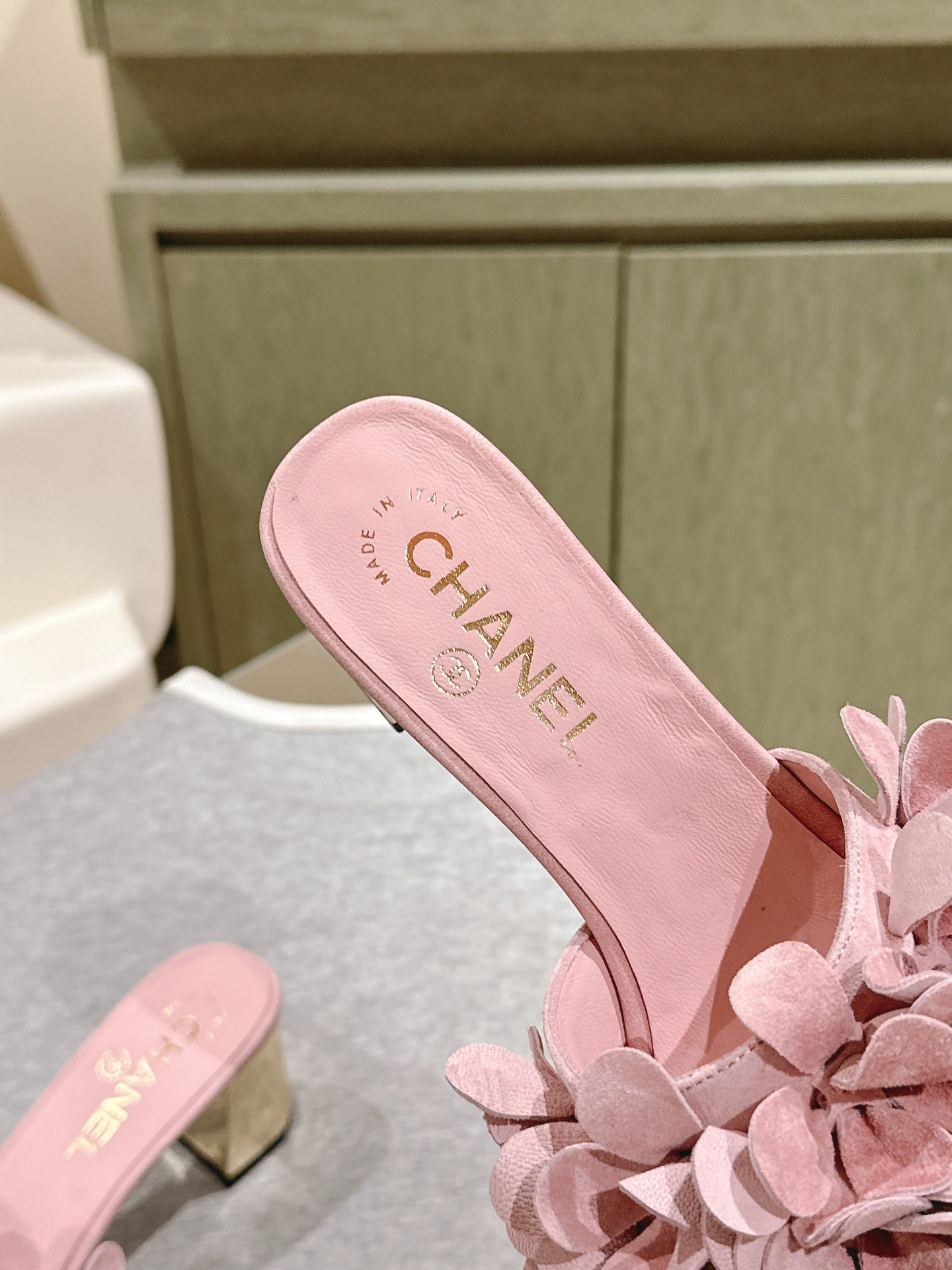 CC Floral Slide Sandals 55mm PInk Suede Cowhide 454285