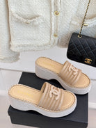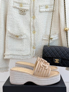 CC Mesh Hollow Chain Double C Thick-Soled Slippers 70mm Beige 265649