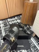 CC Mule 30mm In Black Wool Tweed And Lambskin Gold Hardware