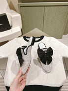 CC JEWELED MULE WITH SILK BLACK BOW IN WHITE LAMBSKIN