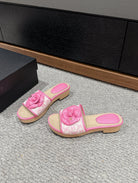 cc sandal flower white canvas pink calfskin