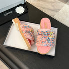 CC Slippers Pink Mix Blue Red Wool And Calfskin