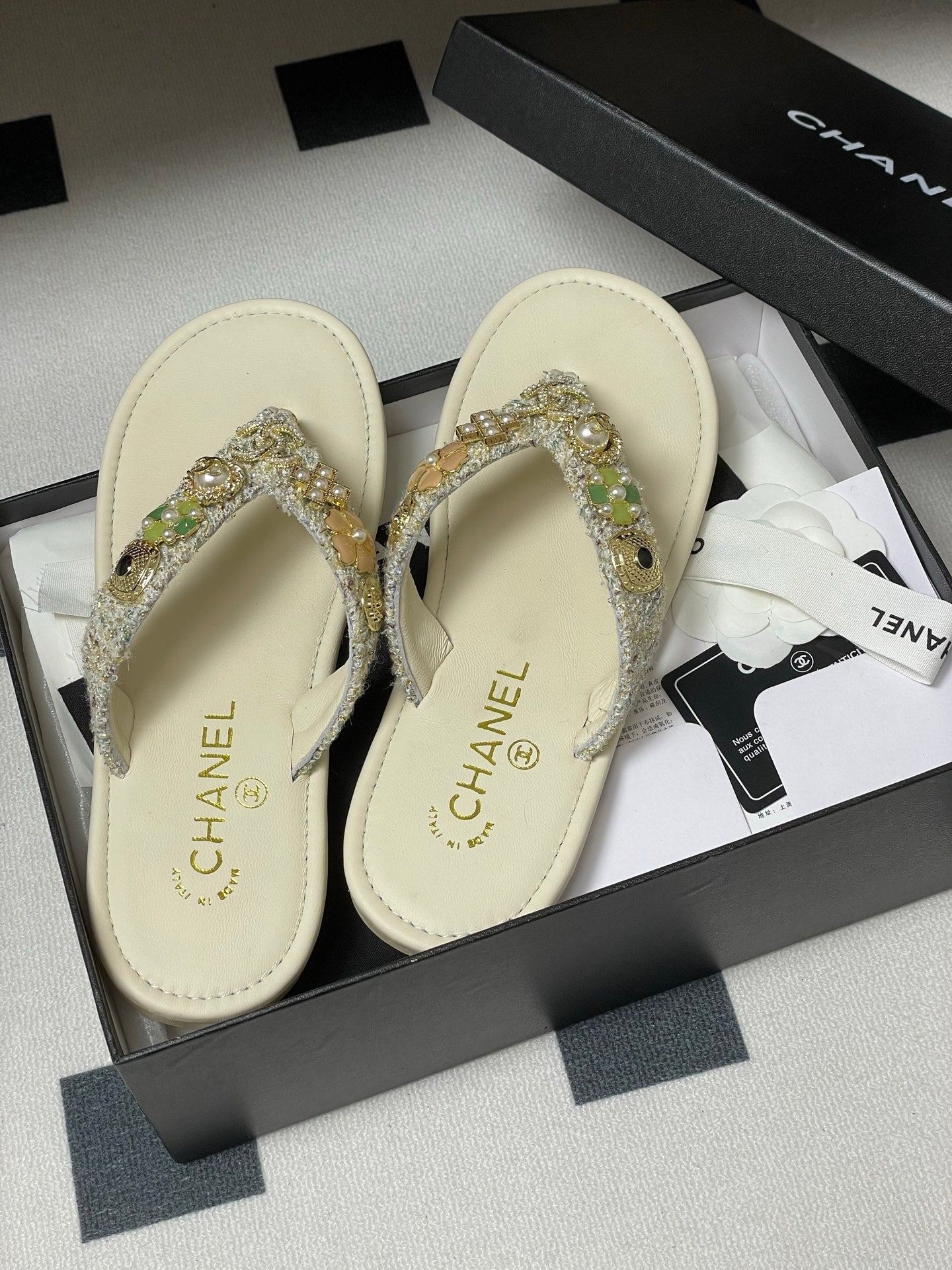 CC Spring-Summer 25P Thongs Cream Tweed anb Metal 247688