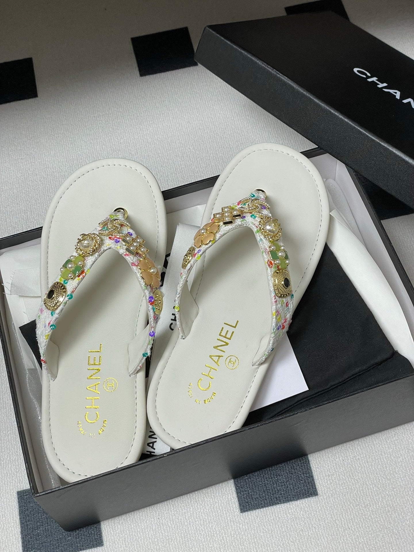 CC Spring-Summer 25P Thongs White Tweed anb Metal 247690
