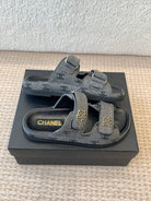 DAD SANDAL IN BLACK DENIM FABRIC MULE