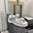 DAD SANDAL IN WHITE MIX LIGHT BLUE TWEED FABRIC