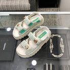 DAD SANDAL IN WHITE MIX PERSIAN GREEN TWEED FABRIC