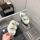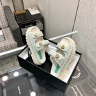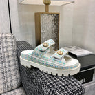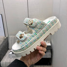 DAD SANDAL MULE IN WHITE MIX PERSIAN GREEN TWEED FABRIC