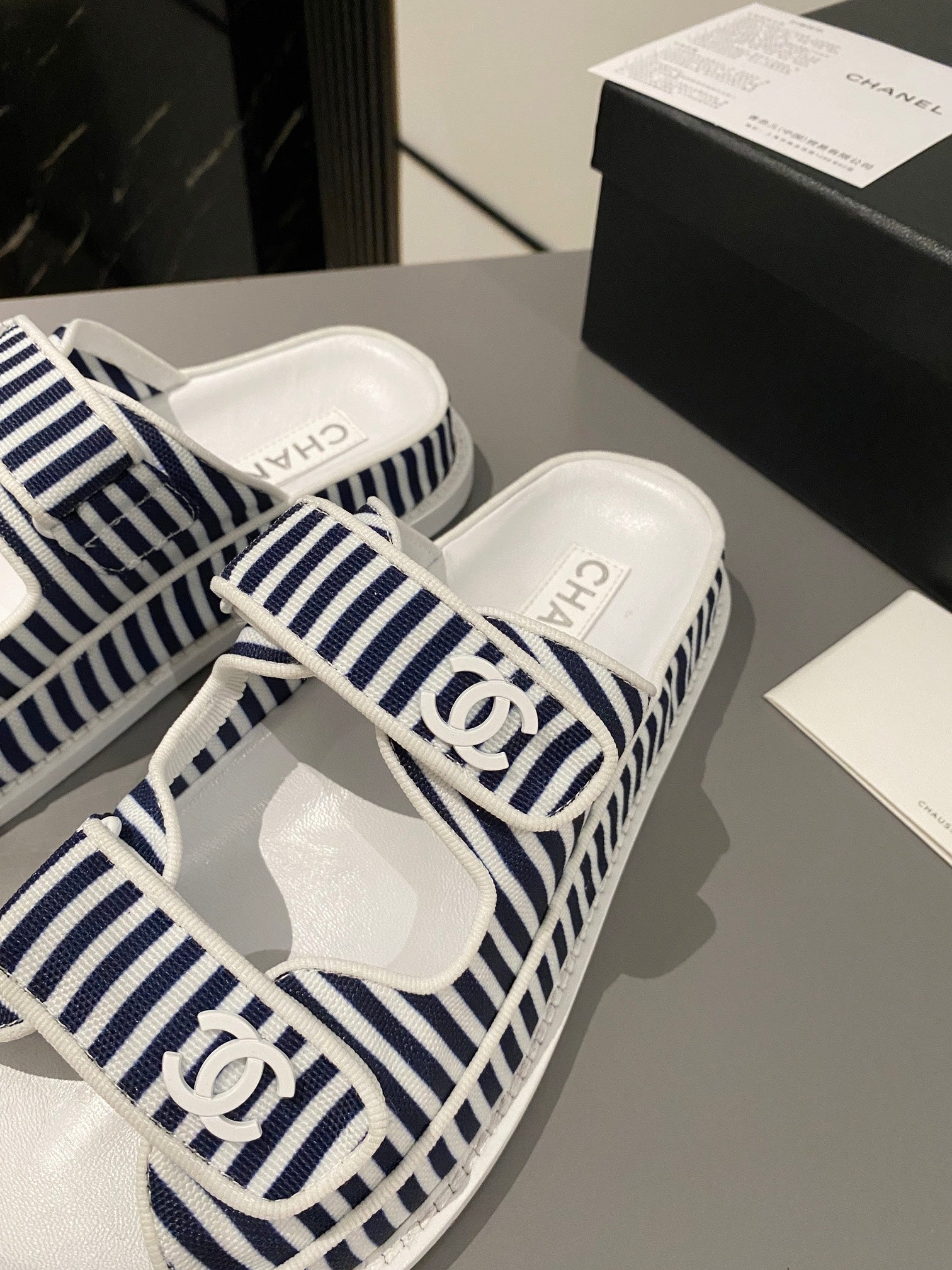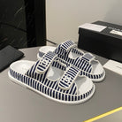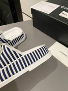 dad sandal mule striped dark blue white fabric calfskin