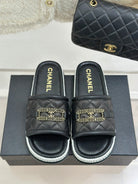DIAMOND QUILTED CHAIN LAZY SLIPPERS IN BLACK LAMBSKIN
