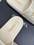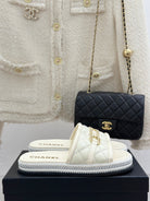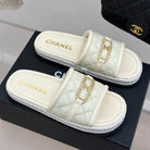 DIAMOND QUILTED CHAIN LAZY SLIPPERS IN WHITE LAMBSKIN