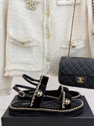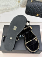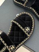 FLAT CHAIN HEART SANDAL IN BLACK VELVET