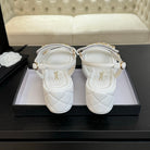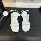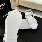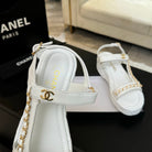 FLAT SANDALS IN WHITE LAMBSKIN WITH GOLD CHAIN