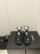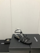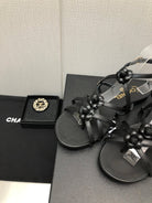 FLORAL FLAT SANDAL IN BLACK LAMBSKIN