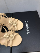 FLORAL HIGH HEEL SANDAL IN SAND YELLOW LAMBSKIN