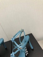 FLORAL HIGH HEEL SANDAL IN SAPPHIRE BLUE LAMBSKIN
