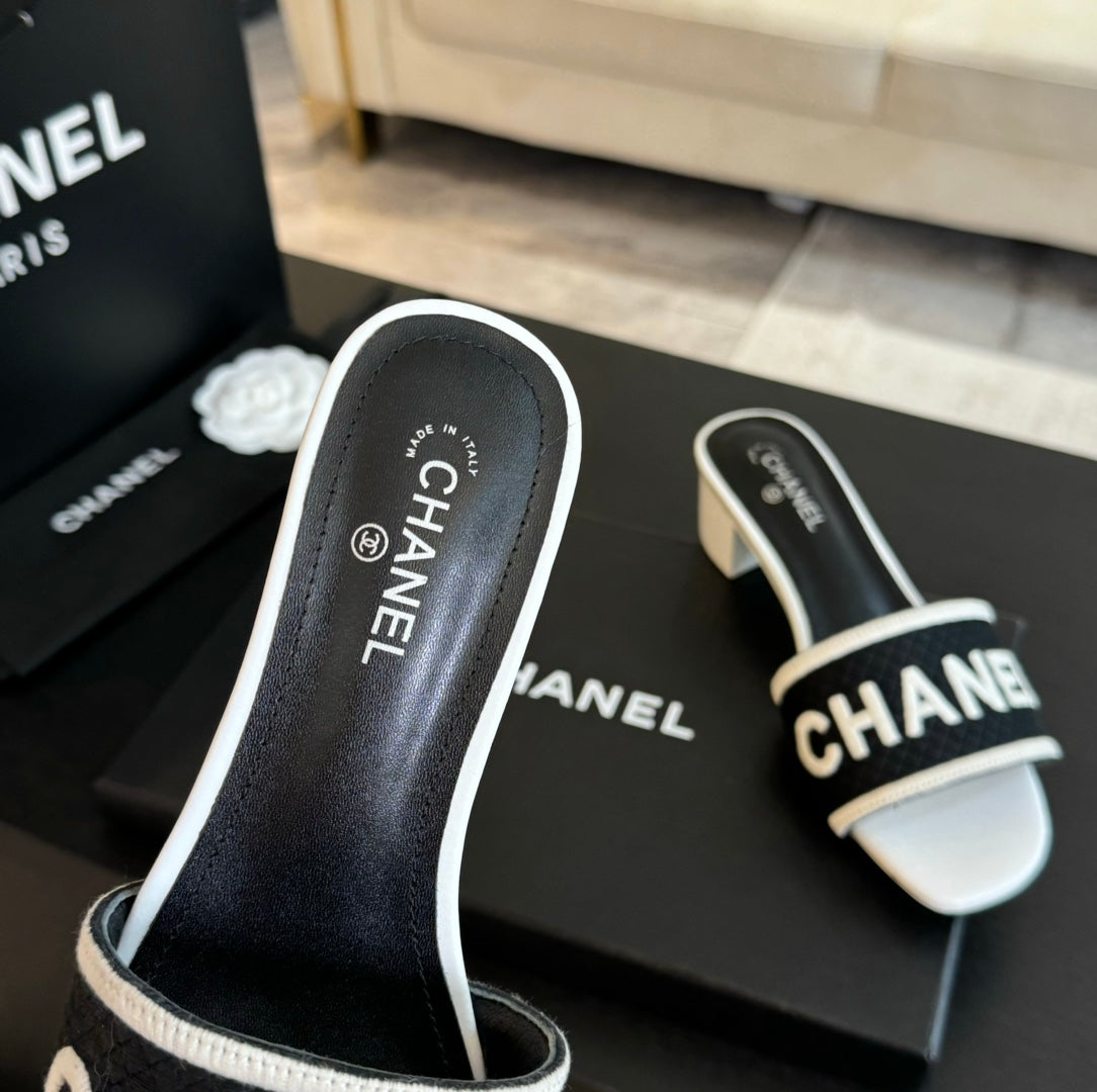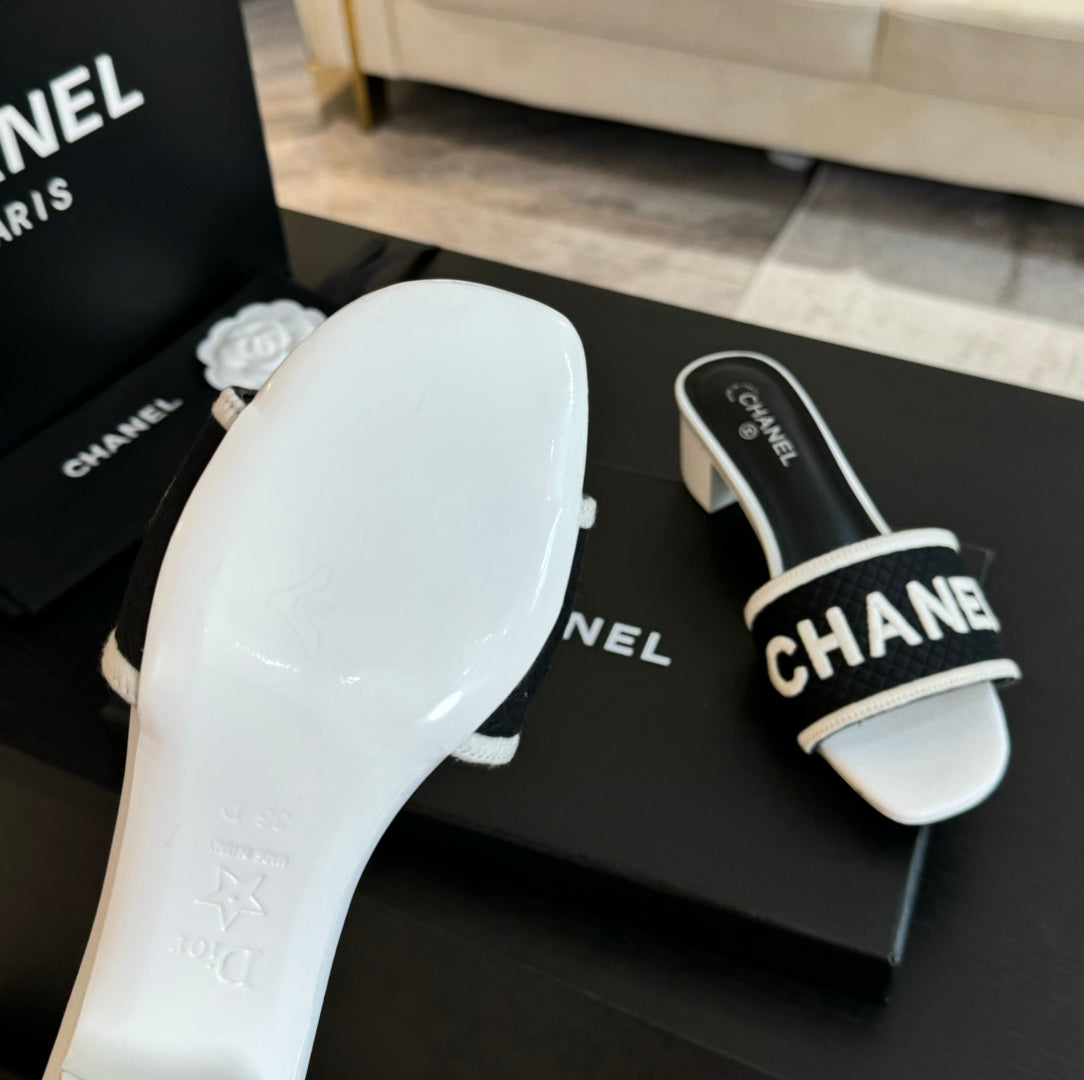 mule sandal 45 black white fabric embroidery