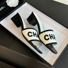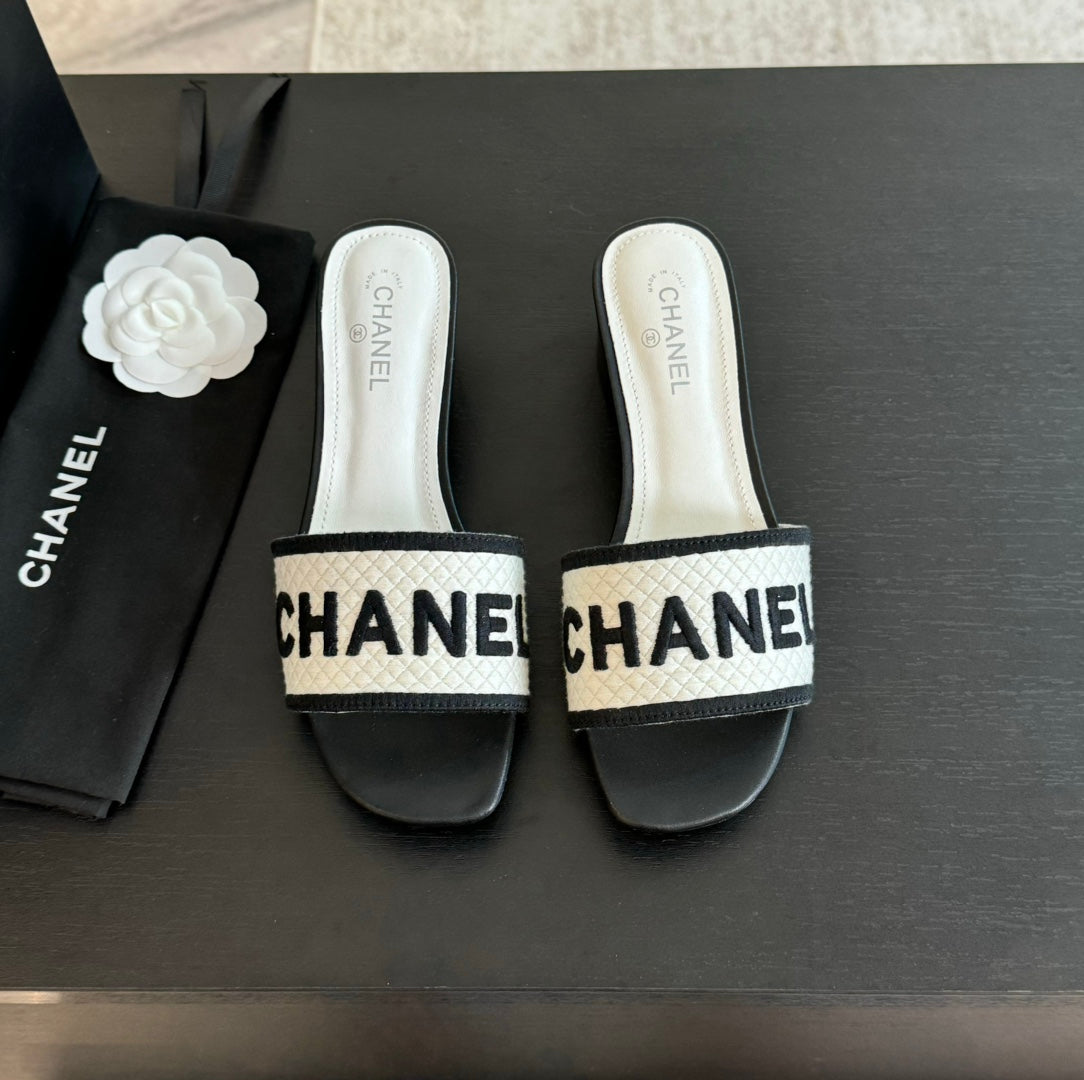 mule sandal 45 white black fabric embroidery