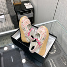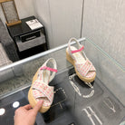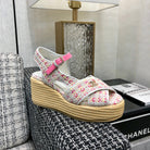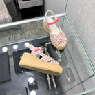 PEEP-TOE THICK SOLE SANDALS IN WHITE MIX BRIGHT PINK WOVEN FABRIC