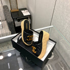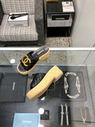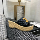THICK SOLE WEDGE SLIPPERS IN BLACK LAMBSKIN AND BEIGE RUBBER