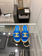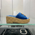 THICK SOLE WEDGE SLIPPERS IN COBALT BLUE LAMBSKIN AND BEIGE RUBBER
