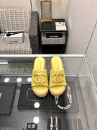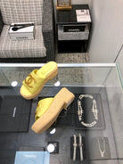 THICK SOLE WEDGE SLIPPERS IN SAND YELLOW LAMBSKIN AND BEIGE RUBBER