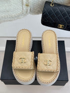 THICK-SOLED CHAIN HEART SLIPPER IN BISQUE BEIGE LAMBSKIN