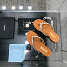 THONG SLIDE IN BRONZE BROWN SUEDE WITH WHITE CRYSTALS