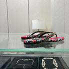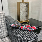THONG SLIDE IN CHERRY RED MIX COLORFUL FLORAL FABRIC