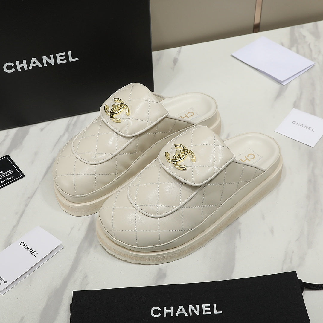 CC Mesh Hollow Chain Double C Thick-Soled Slippers 20mm Beige White 265644