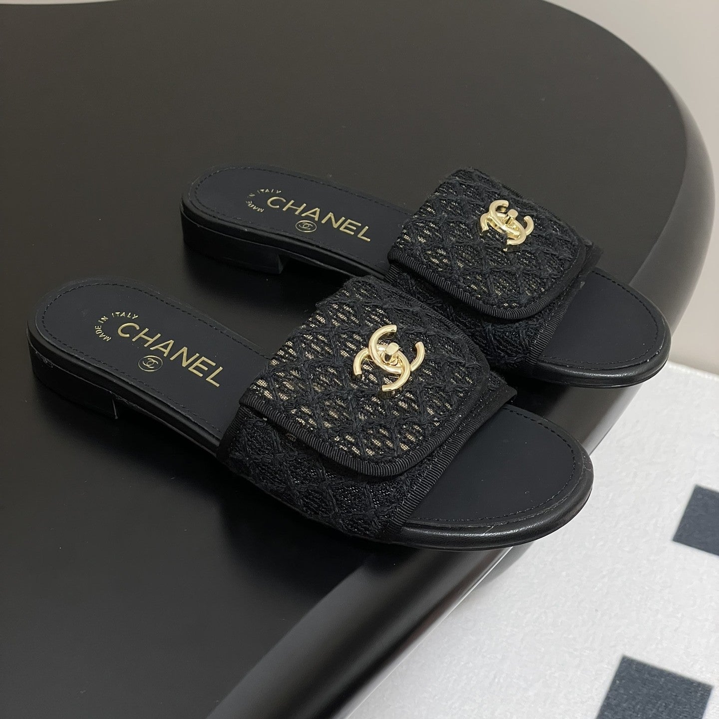 CC Mesh Hollow Chain Double C Thick-Soled Slippers 20mm Black 265647