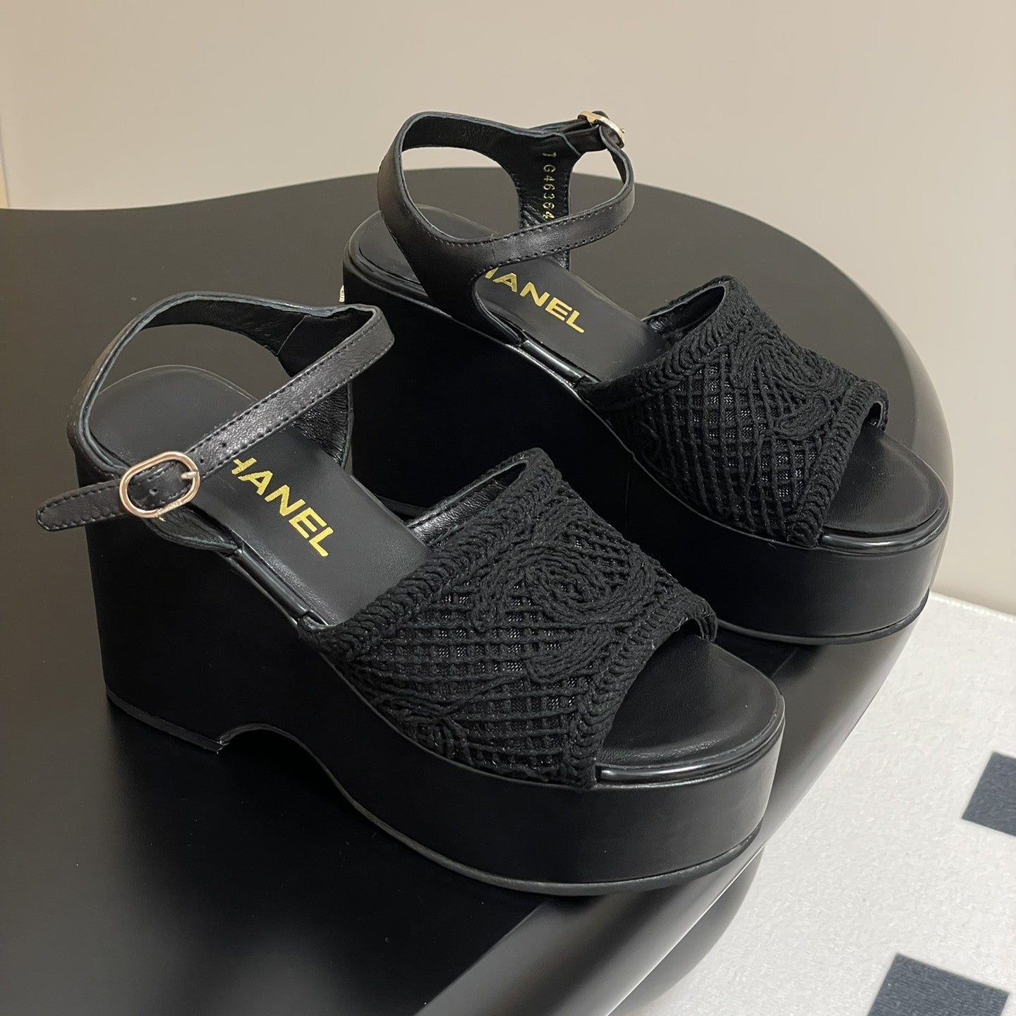 CC 25S Small Wedge Thick-Soled Sandal 10cm Black Woven 247606