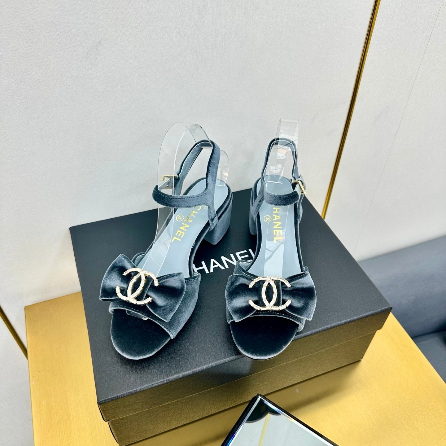 cc 25 bow mule sandal 50mm black velvet 238476