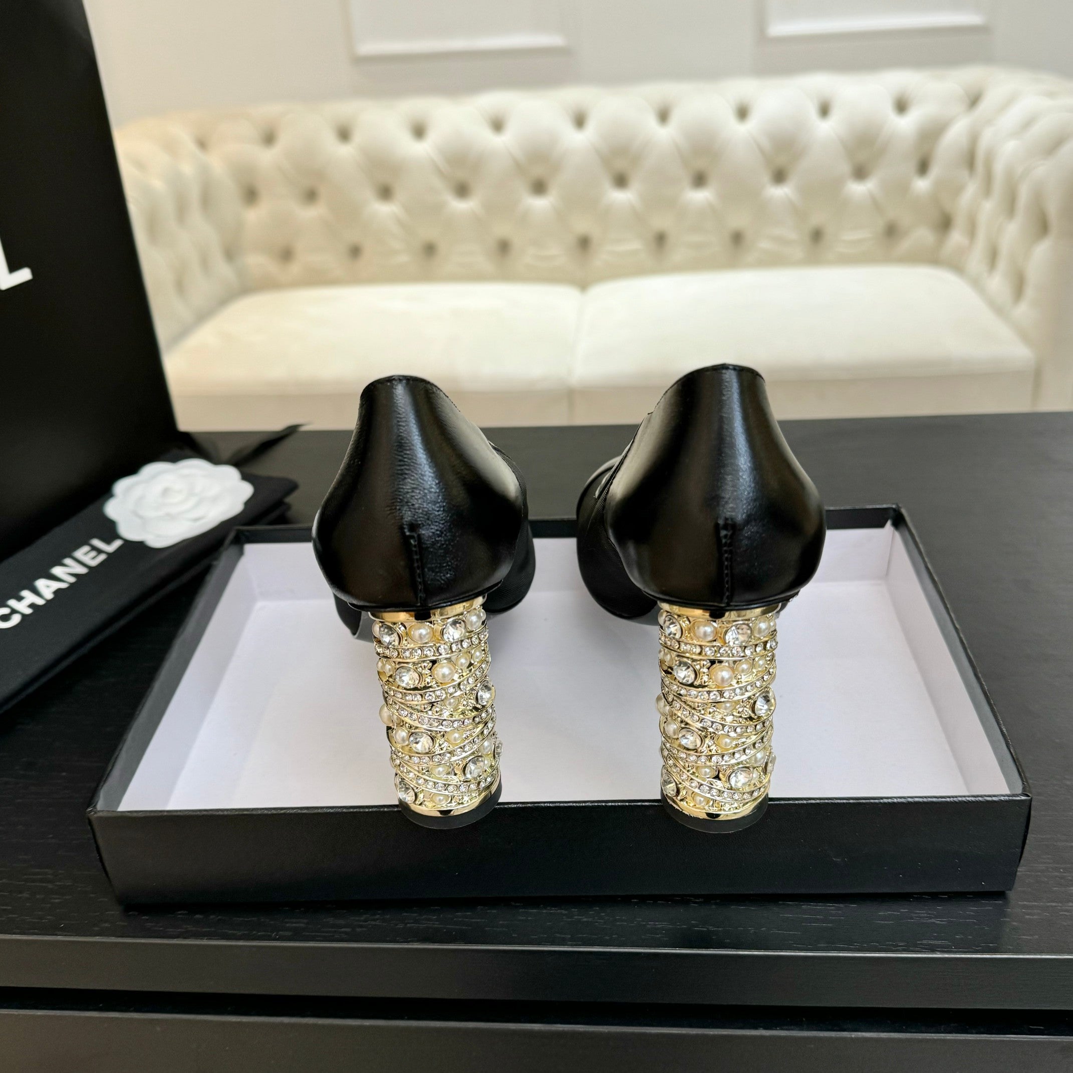 T-STRAP PEARL HEEL 85 MM SANDALS IN BLACK LAMBSKIN MULE