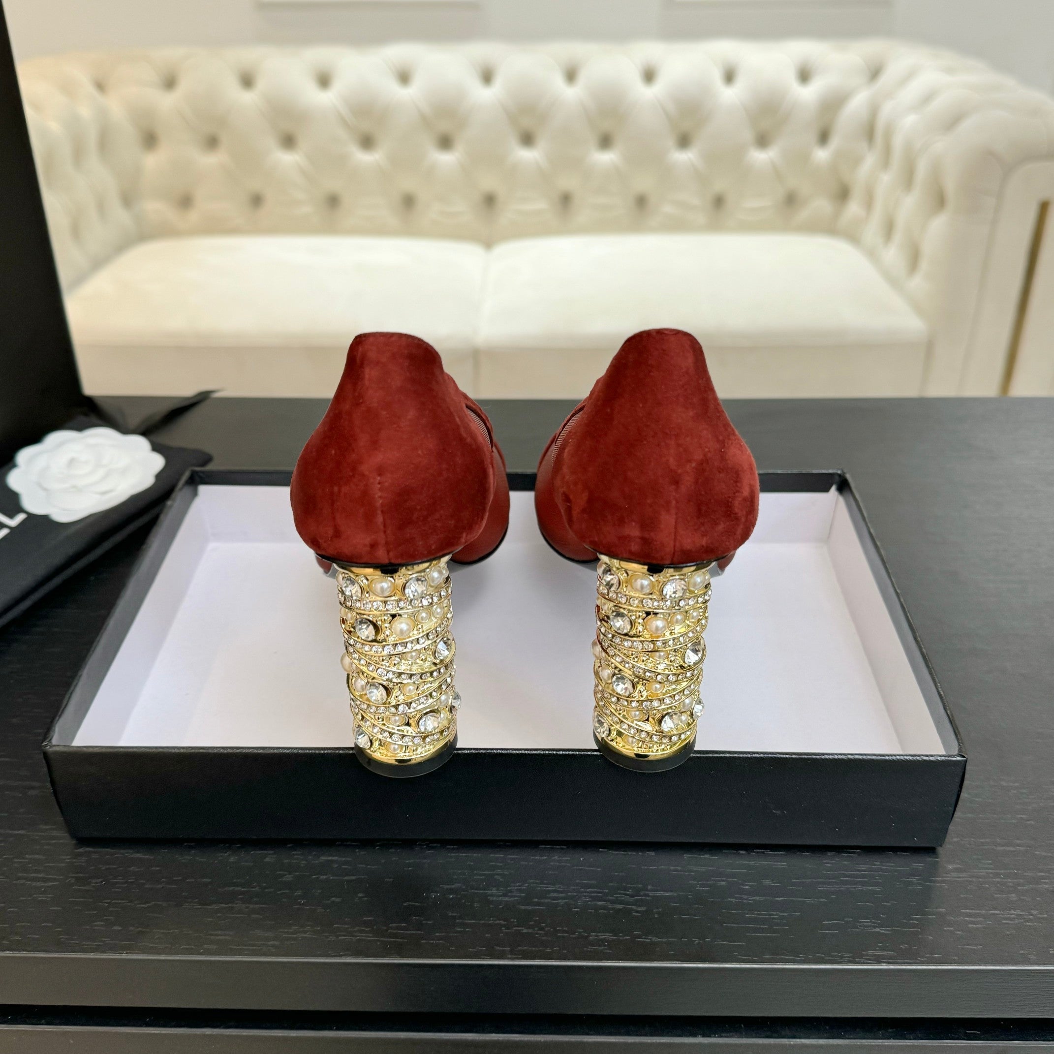 T-STRAP PEARL HEEL 85 MM SANDALS IN SANGRIA RED SUEDE