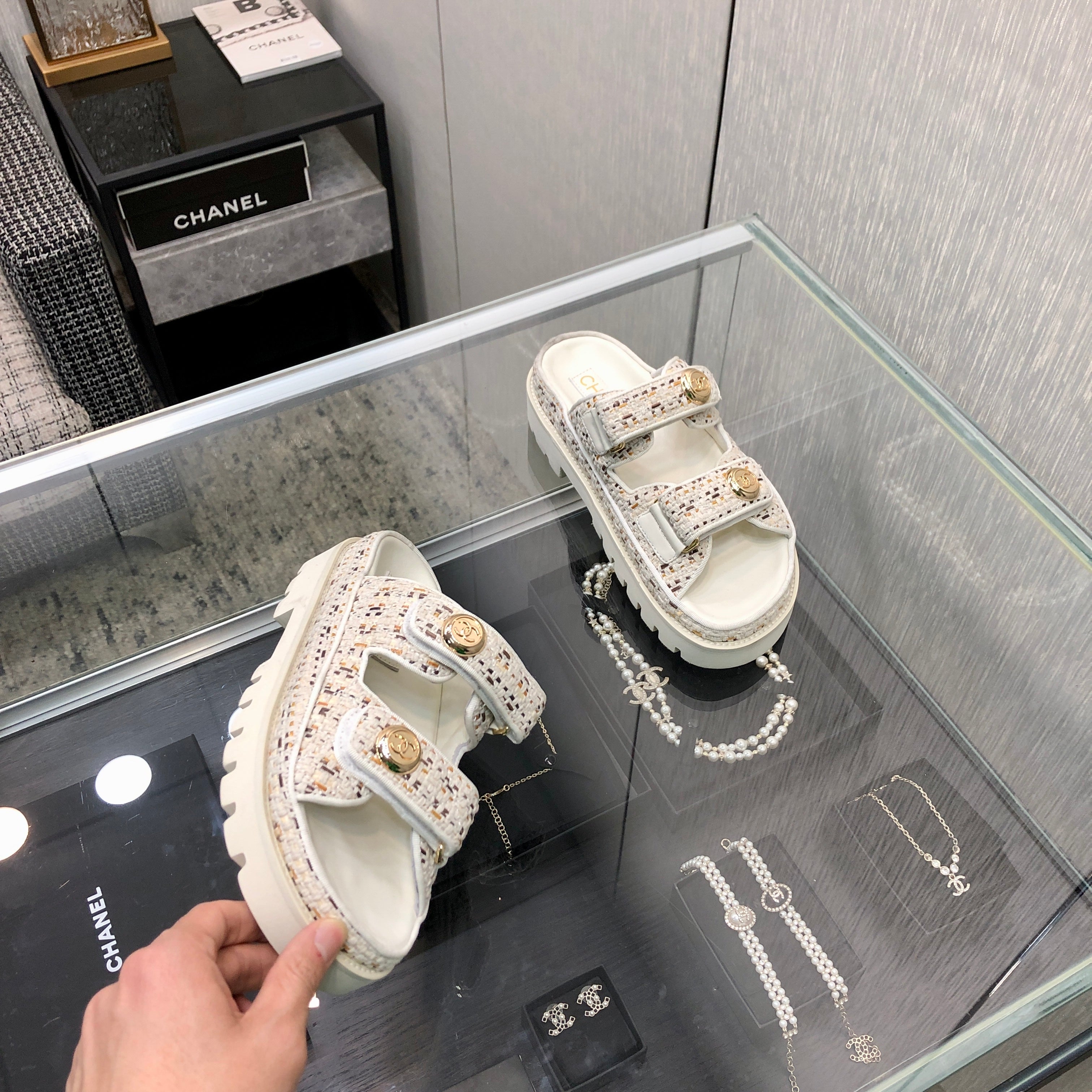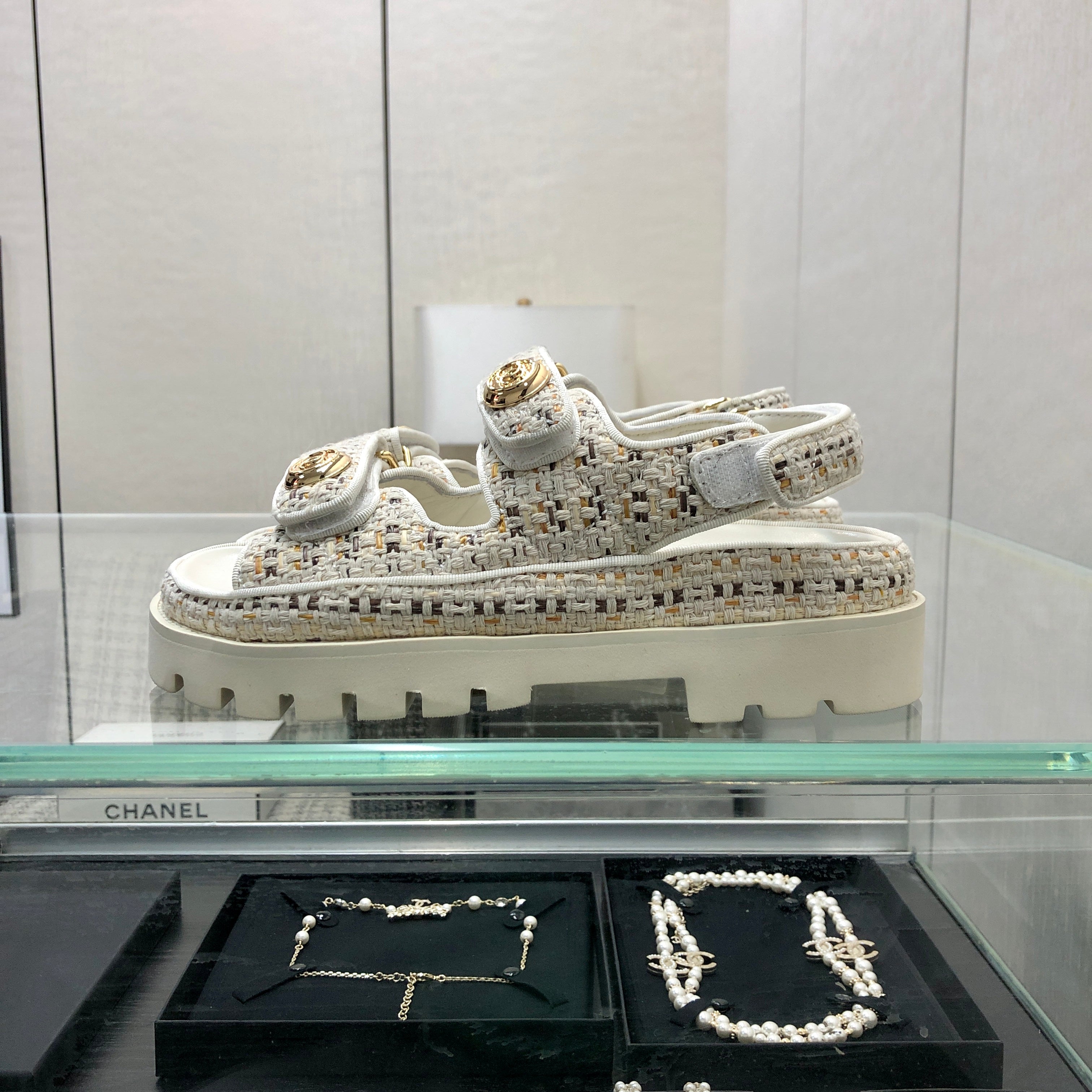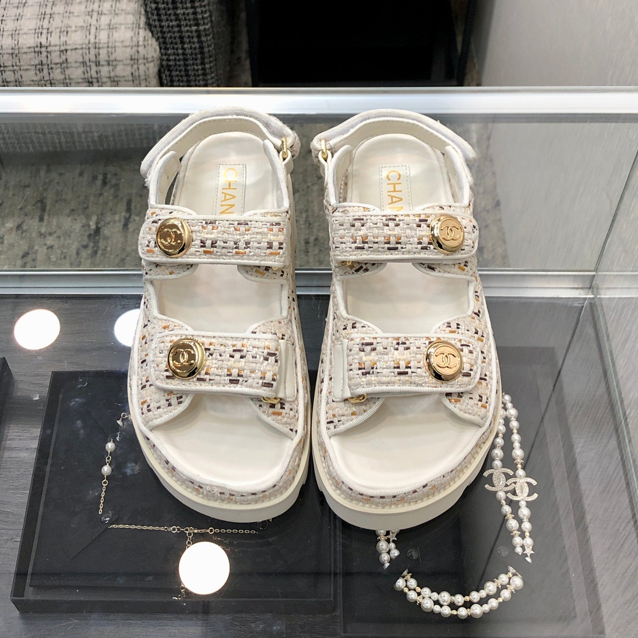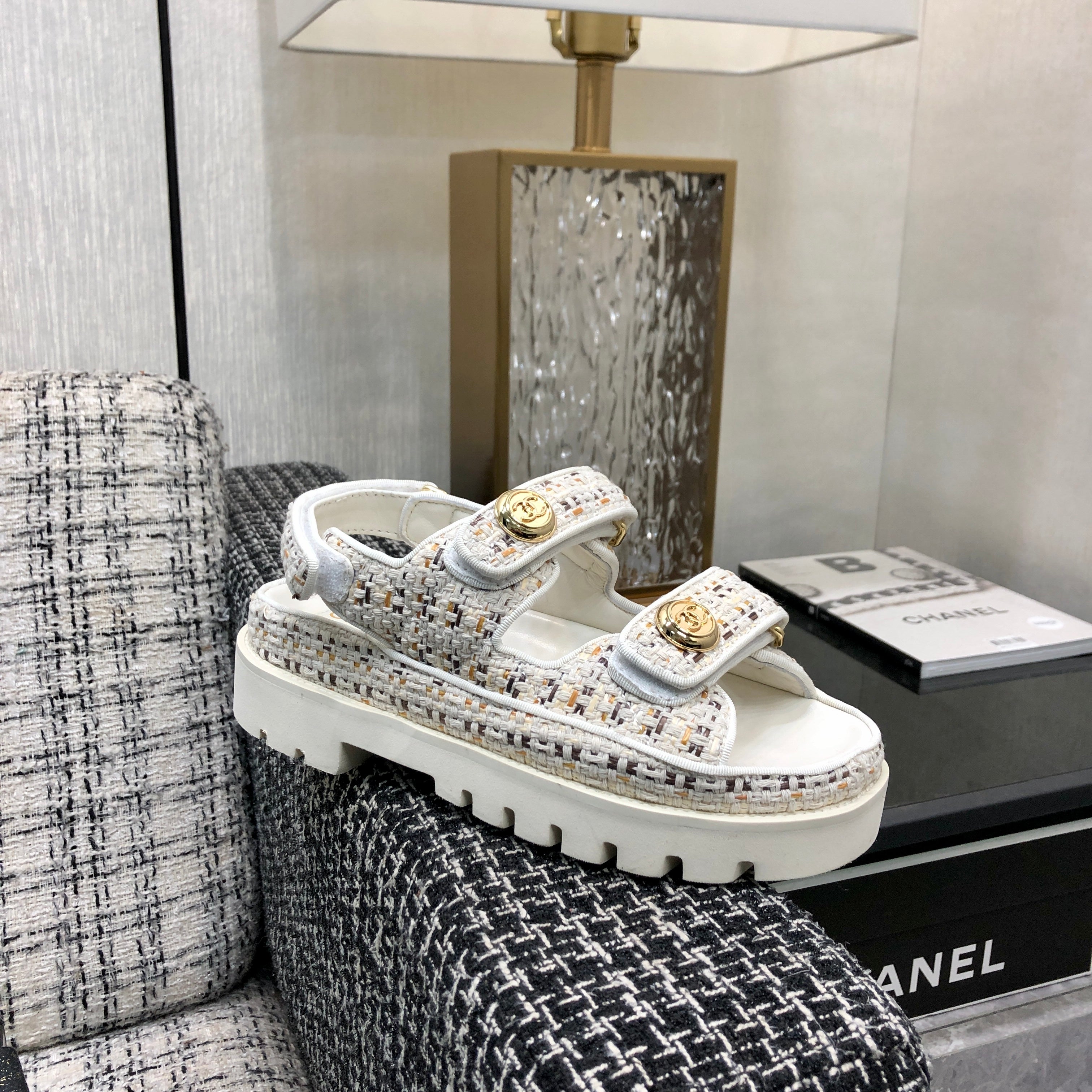 DAD SANDAL IN WHITE MIX LIGHT GOLD TWEED FABRIC