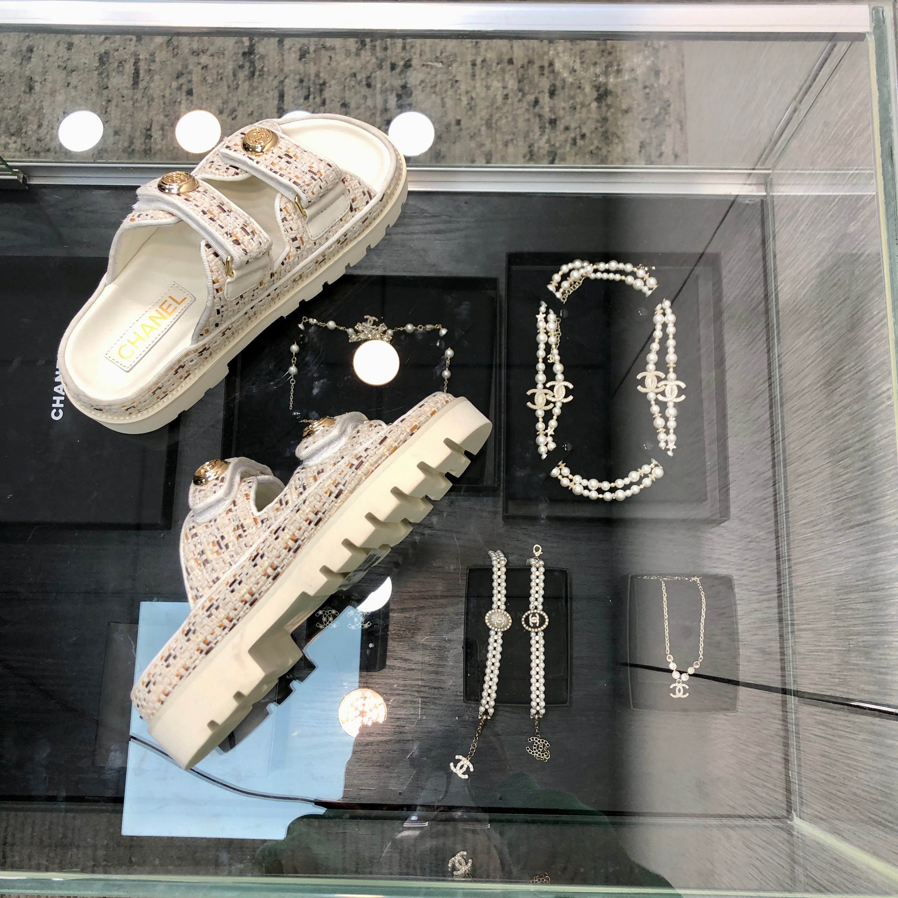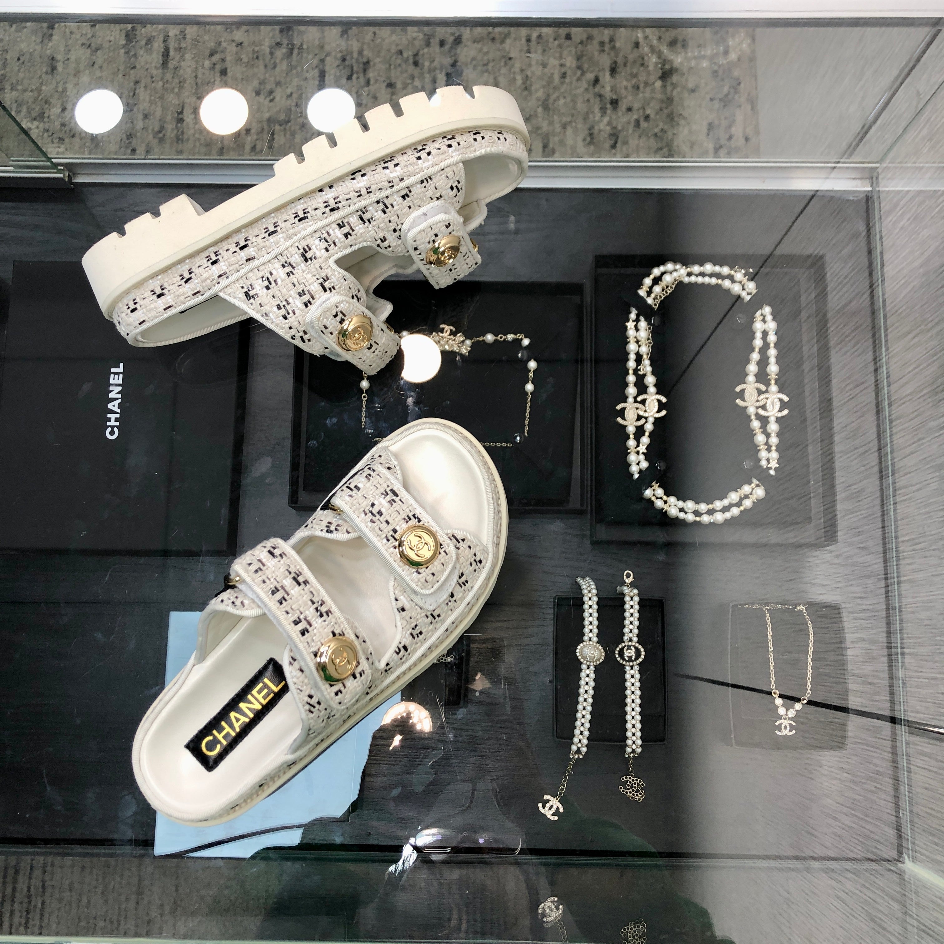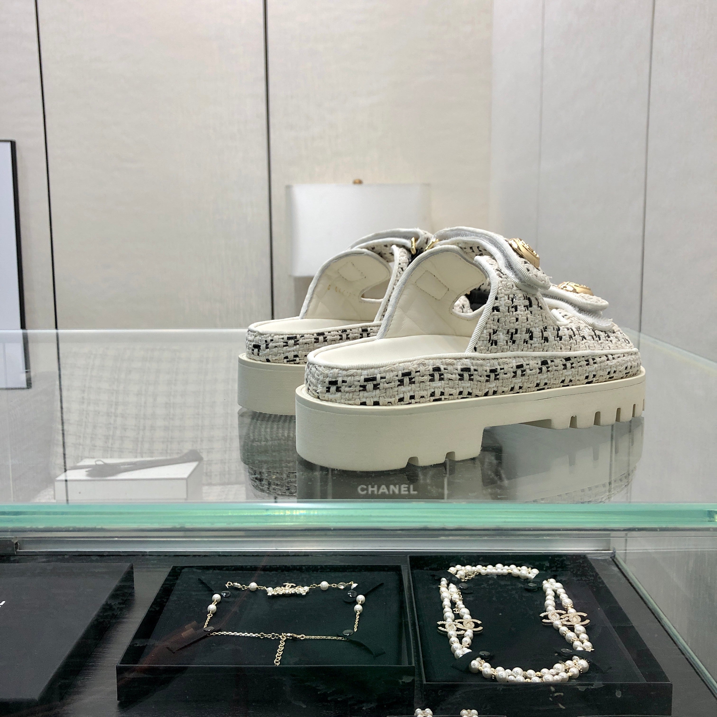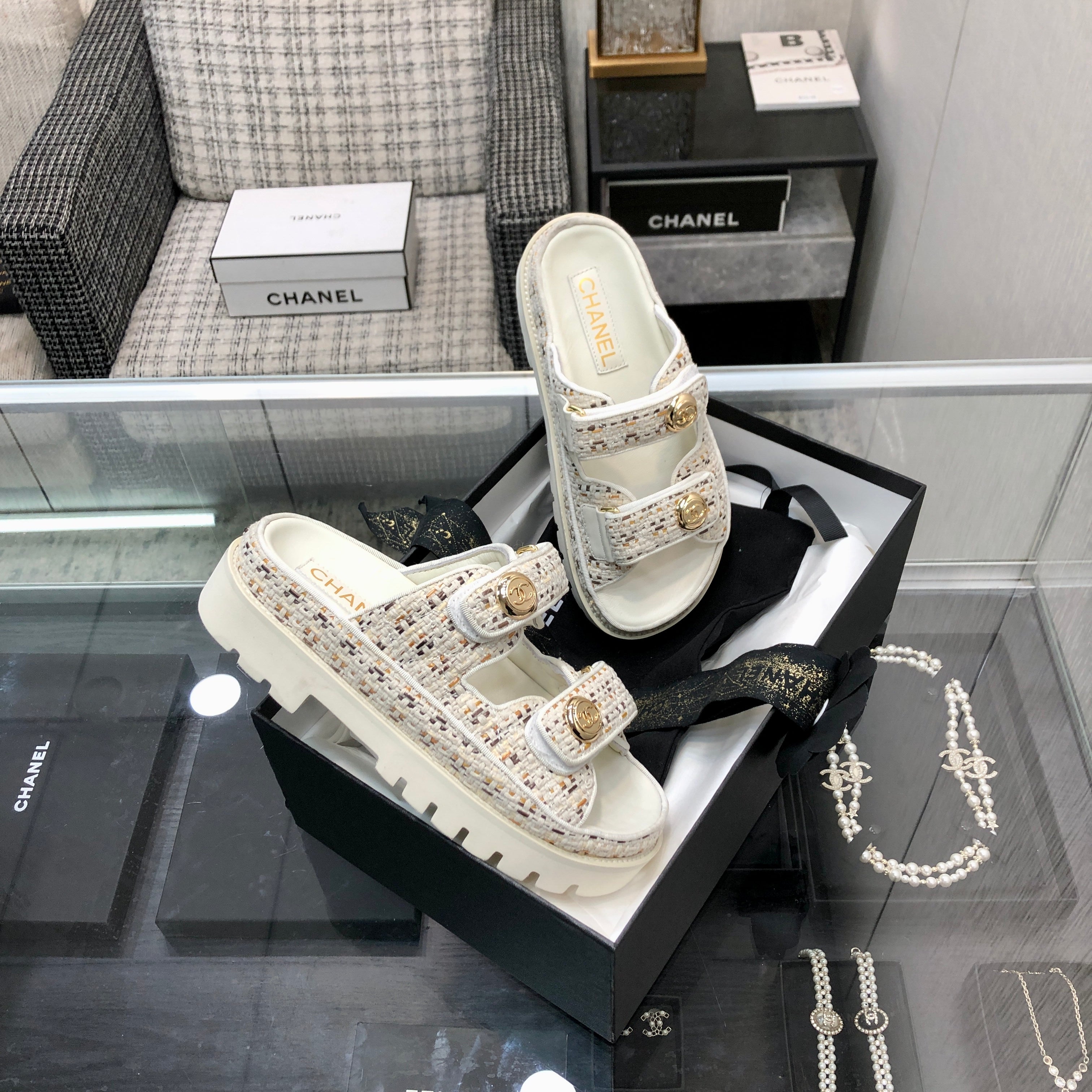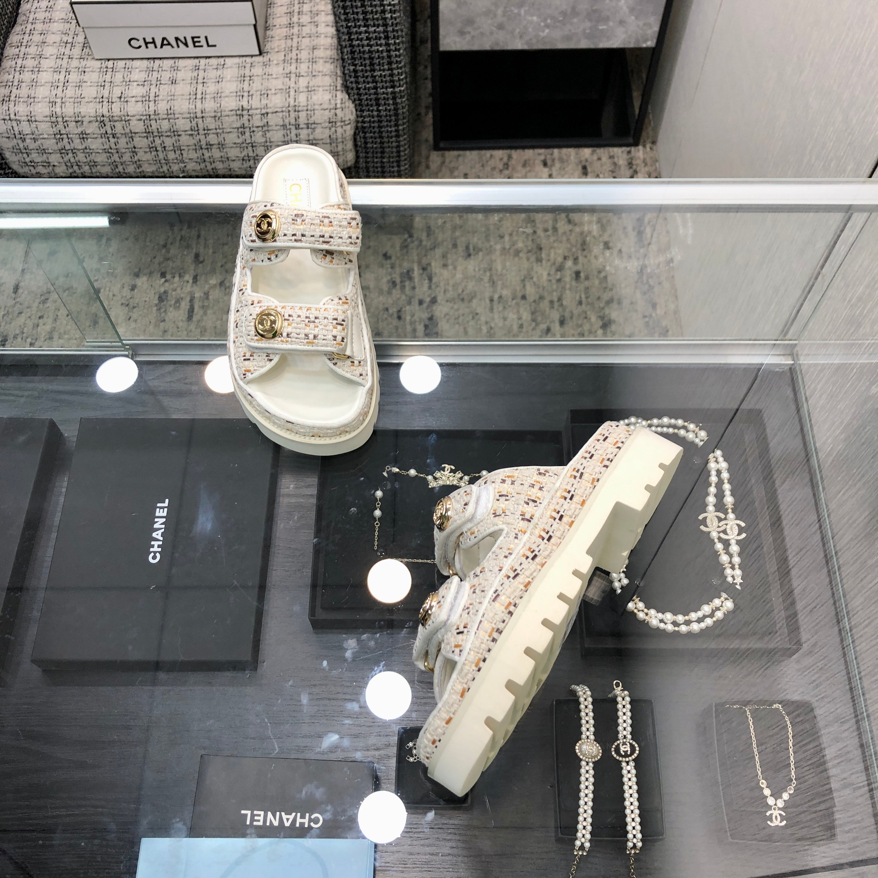 DAD SANDAL IN WHITE MIX LIGHT GOLD TWEED FABRIC