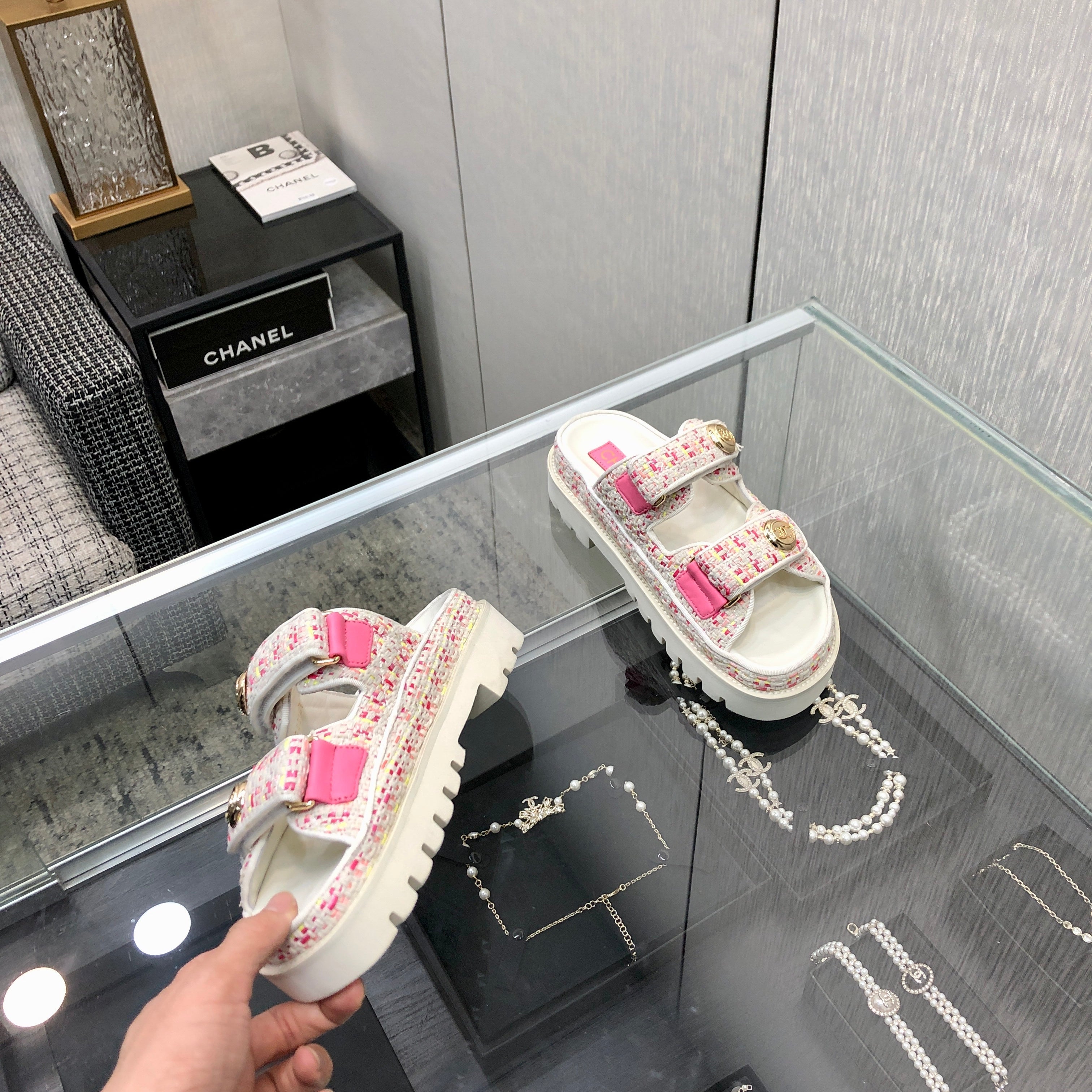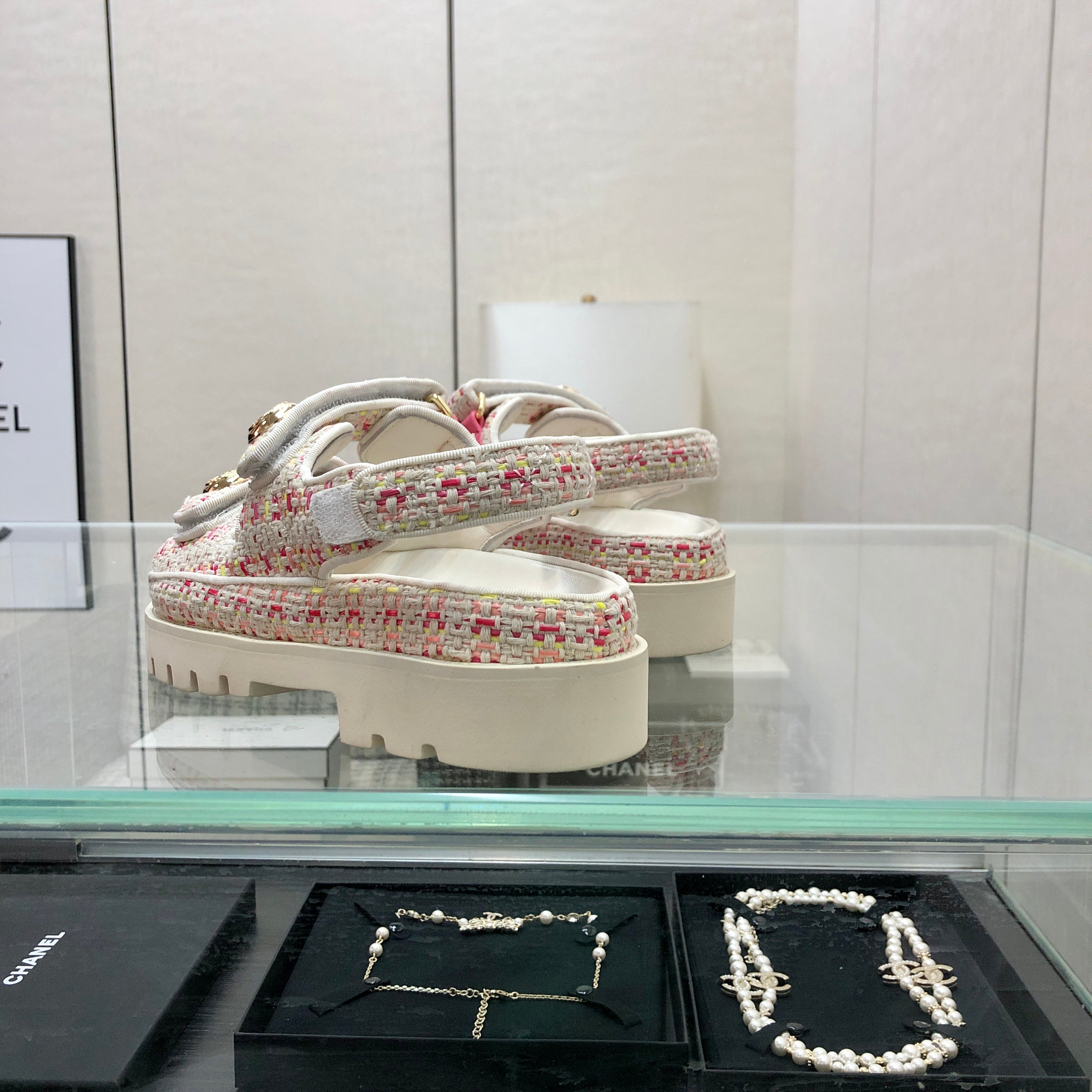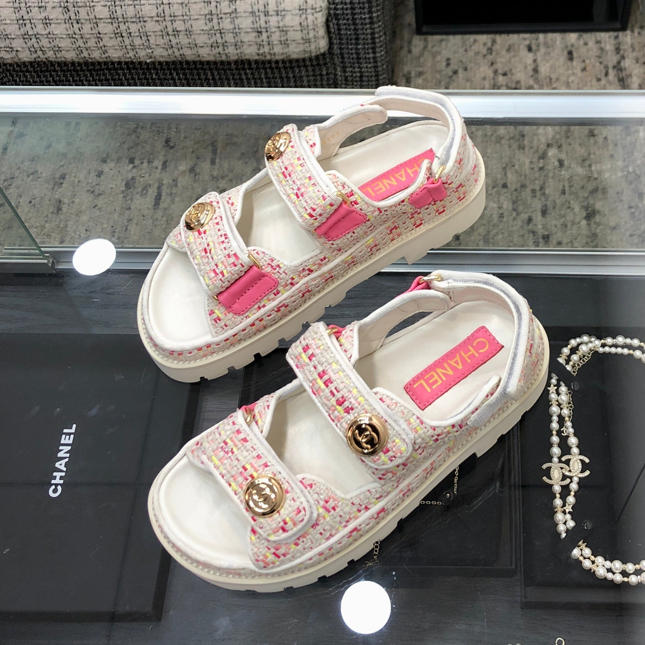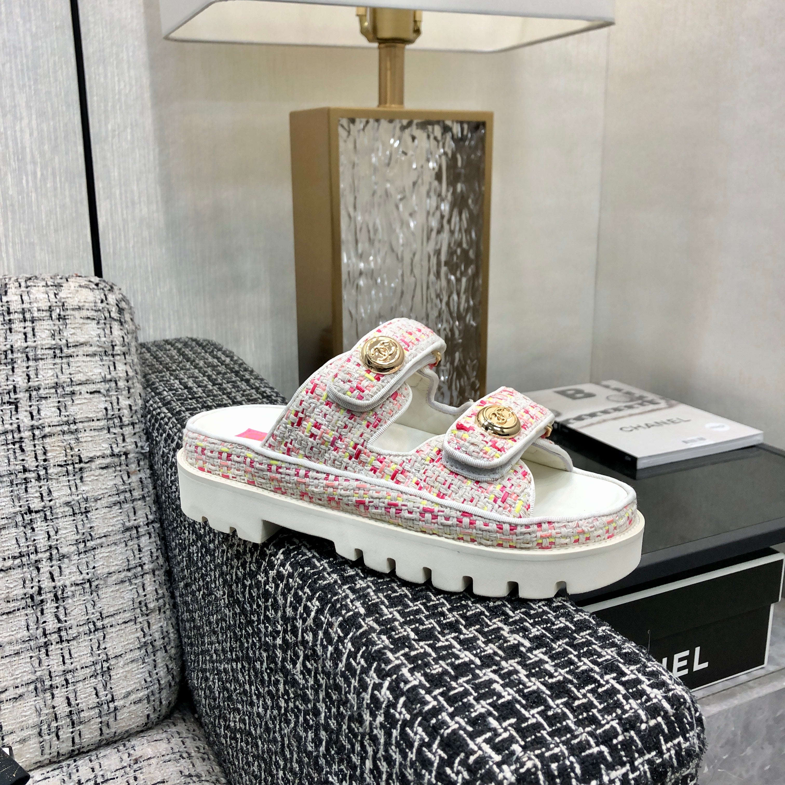 DAD SANDAL IN WHITE MIX BRIGHT PINK TWEED FABRIC